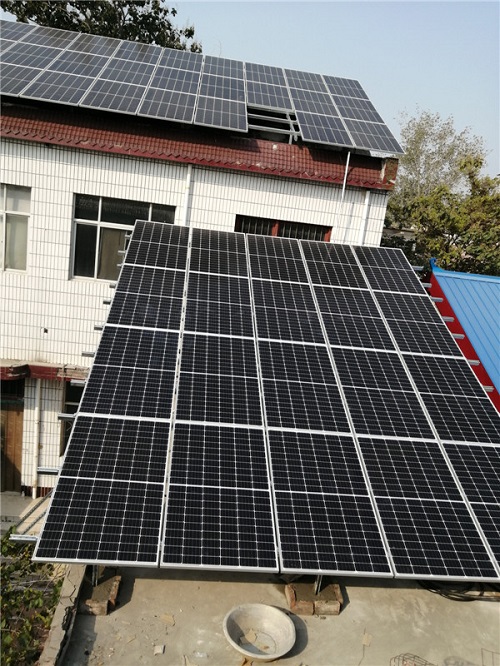 系统主要由光伏组件和逆变器两大设备构成。当太阳光照射在光伏组件上,电池片将光能转换成电能,产生直流电。逆变器的作用是将直流电转换成符合市电电网要求的交流电。多余的电量将被输送到国家电网,并通过光伏计量表计算发电量向国家电网收取电费。